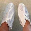 These "bags" on my feet are "foot masks" filled with lotion and softening agents...