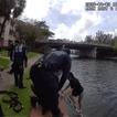 Firefighters from the Broward Fire Rescue and the Hallandale Police Department teamed up to rescue a woman named Diana and her male dog Cookie who fell into the Intercoastal Waterway seawall on Thursday.