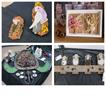 Top left shows a wildflower and a galah created from wood I think and mounted on banksia nuts which have been...