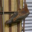 If you check the image back in my previous discussion, you will see the wax model of the shearer wearing ‘slippers’ similar to the ones in this photo. These are moccasin-type shoes made of soft leather.