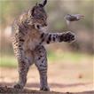 It shows this wild cat playing his prey. It's an amazing photo. It looks like just my cat, Oliver when he's batting his toy mouse...