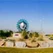 The image shows a roundabout in Austria. The sign near the ‘ball’ says LiSEC which is a company which develops and produces glass cutting and sorting systems. They also produce insulating and laminated glass.