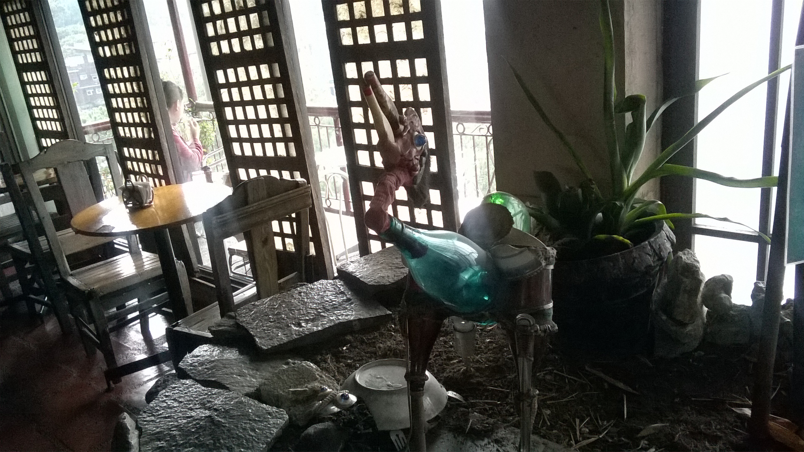 You must be feeling strange about this work of art. I took this photo in one of the restaurants in my city before the pandemic. Some people think that it is a bird. It looks like an alien to me though. The good thing is the artist had recycled unused things.