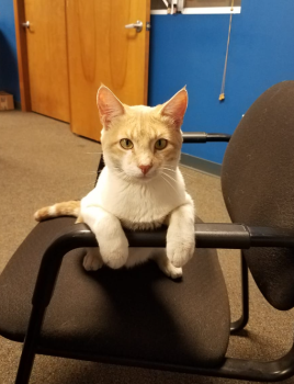 When we originally picked Cal up from the farm where we got him, his name was Debra. Of course, all of us in the office agreed Debra was a silly name for a cat, and so we renamed Debra, Callie. Not sure how we came up with that, but it was certainly better than Debra.