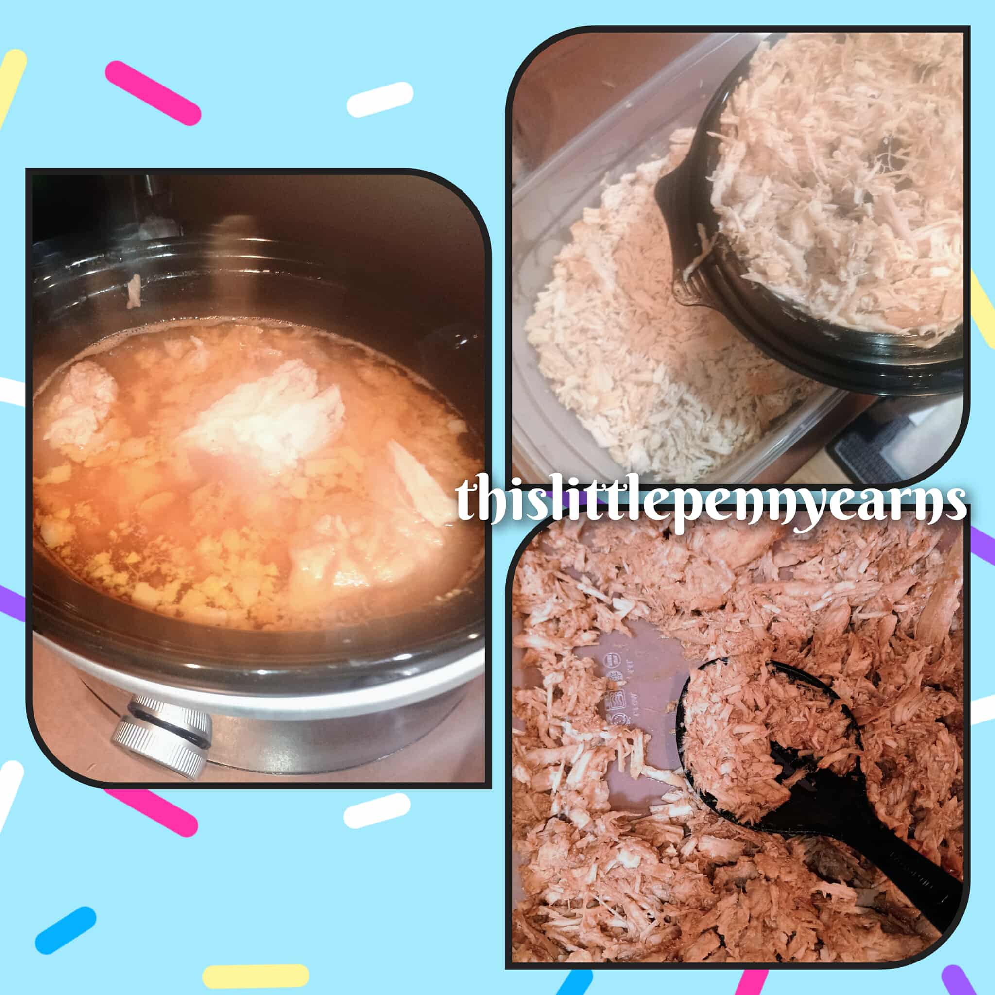 almost five pound pork loin, one cup of water, an assload of seasonings and bbq sauce, then I put more sauce on it when I pull it.
