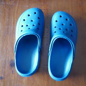The shop has everything a person could need if they’re into boating, fishing and camping. Half the shop is taken up with fishing rods and all the accessories you could need. I saw this display on the end of an aisle. They are plastic slip-ons for wearing in water. You can see they’re meant to look like fish.