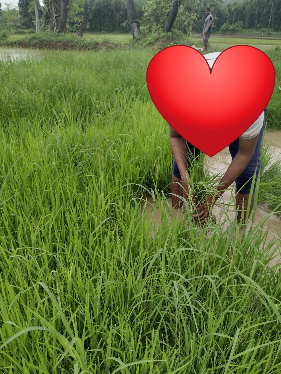 Early Morning I went along with my Uncle to our farm land.I don't know what exactly he is doing here, I think he is transplanting seedlings.