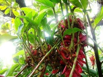 They have a botanical name Alpunia purpurata but we call them ginger flowers, as the plant resembles a ginger plant and the leaves smell of ginger.