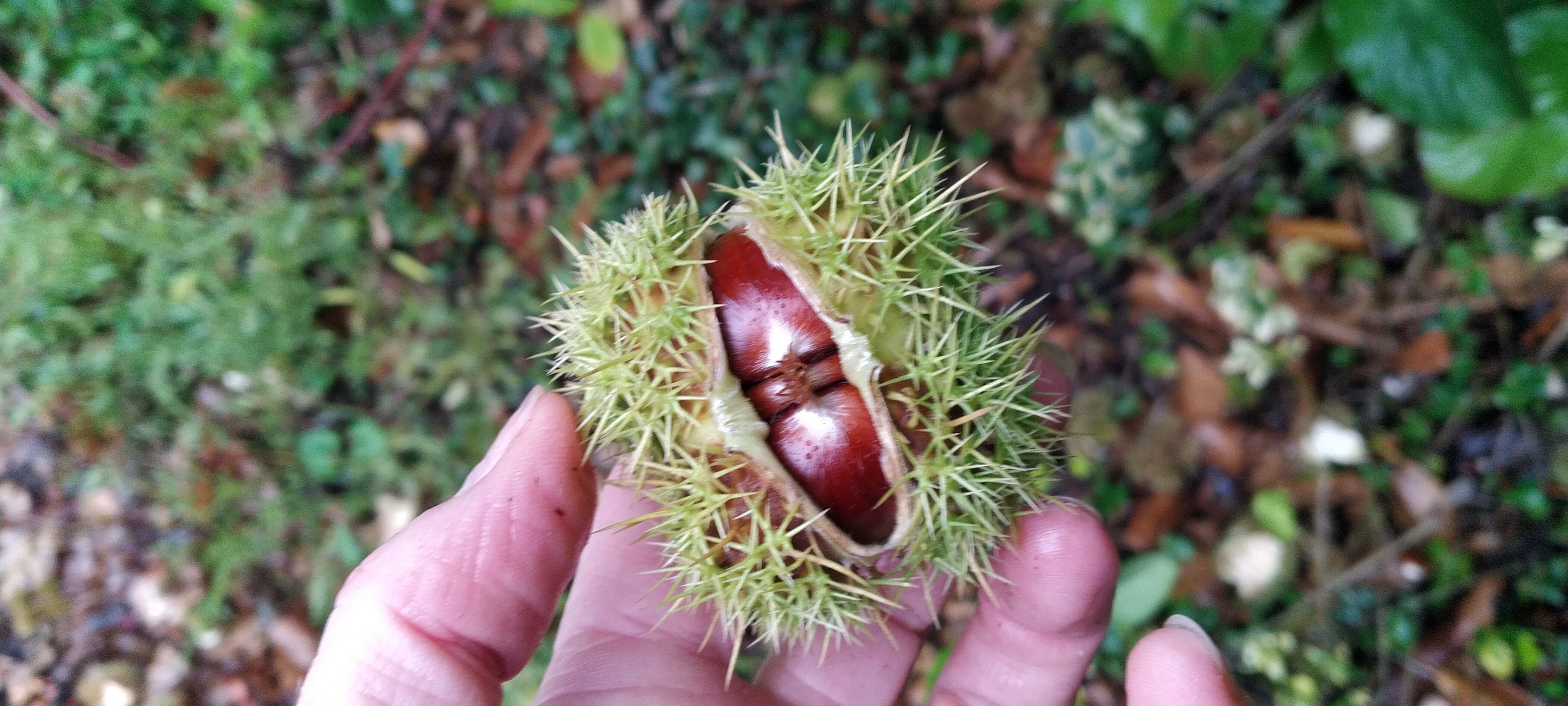 I love chestnuts, this is the right season to pick them up, we can also find walnuts, figs and with a bit of luck mushrooms. I learnt in Switzerland to prepare "vermicelles" (also called Mont Blacn) with boiled mashed chestnuts, sugar and whipped cream.