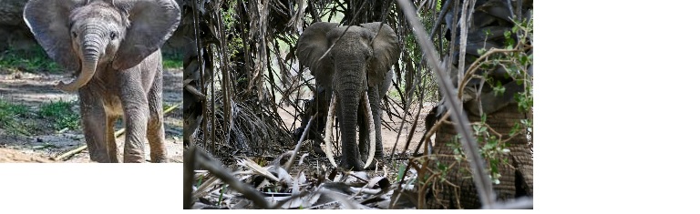 I did not know too that the two incissors (teeth) of the upper jaw of the elephant grow into tusks. The picture shows a baby elephant with no tusks and a mature fully grown elephant with tusks - one among elephants with the longest tusks in Africa.