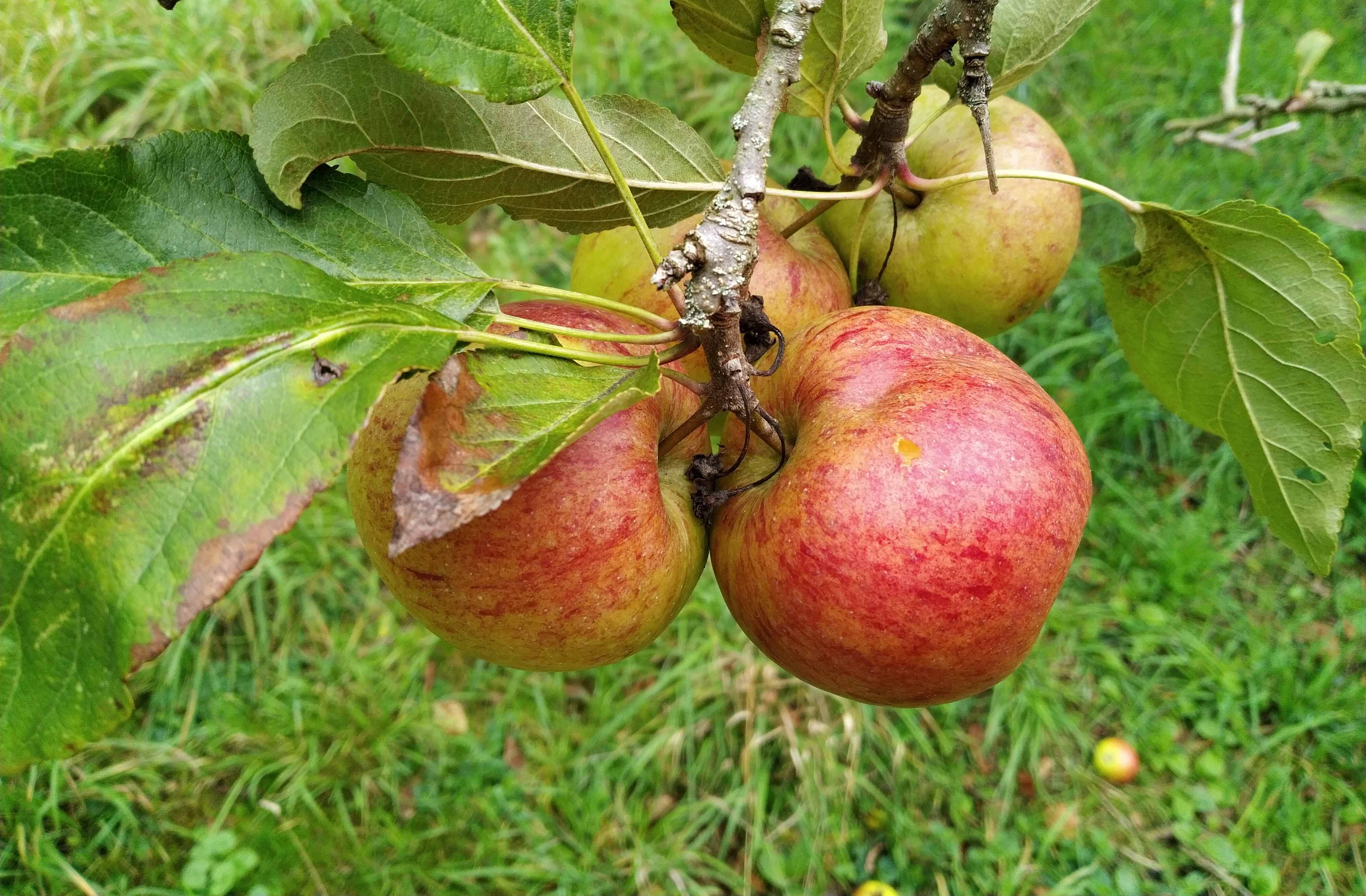 We have three biggish apple trees and they produce more apples than we can eat, but the birds like to choose the ripest ones and then peck just a little bit from one at a time – can you see the tiny hole pecked in the apple in the photo?