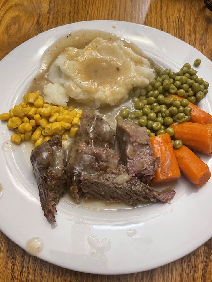 We were supposed to do this several times over the summer, but it kept falling through. But, this time, we were successful. We're staying at a Holiday Inn resort in what's basically a 2 bedroom condo. We usually cook while we're away because it's cheaper. That's what we did here. Brought meat for four days, including my chuck roast I hadn't had a chance to cook yet. Cooked it on top of the stove. It was perfect! This picture is the end result - on my plate. His looked the same. Two more nights and we go home.