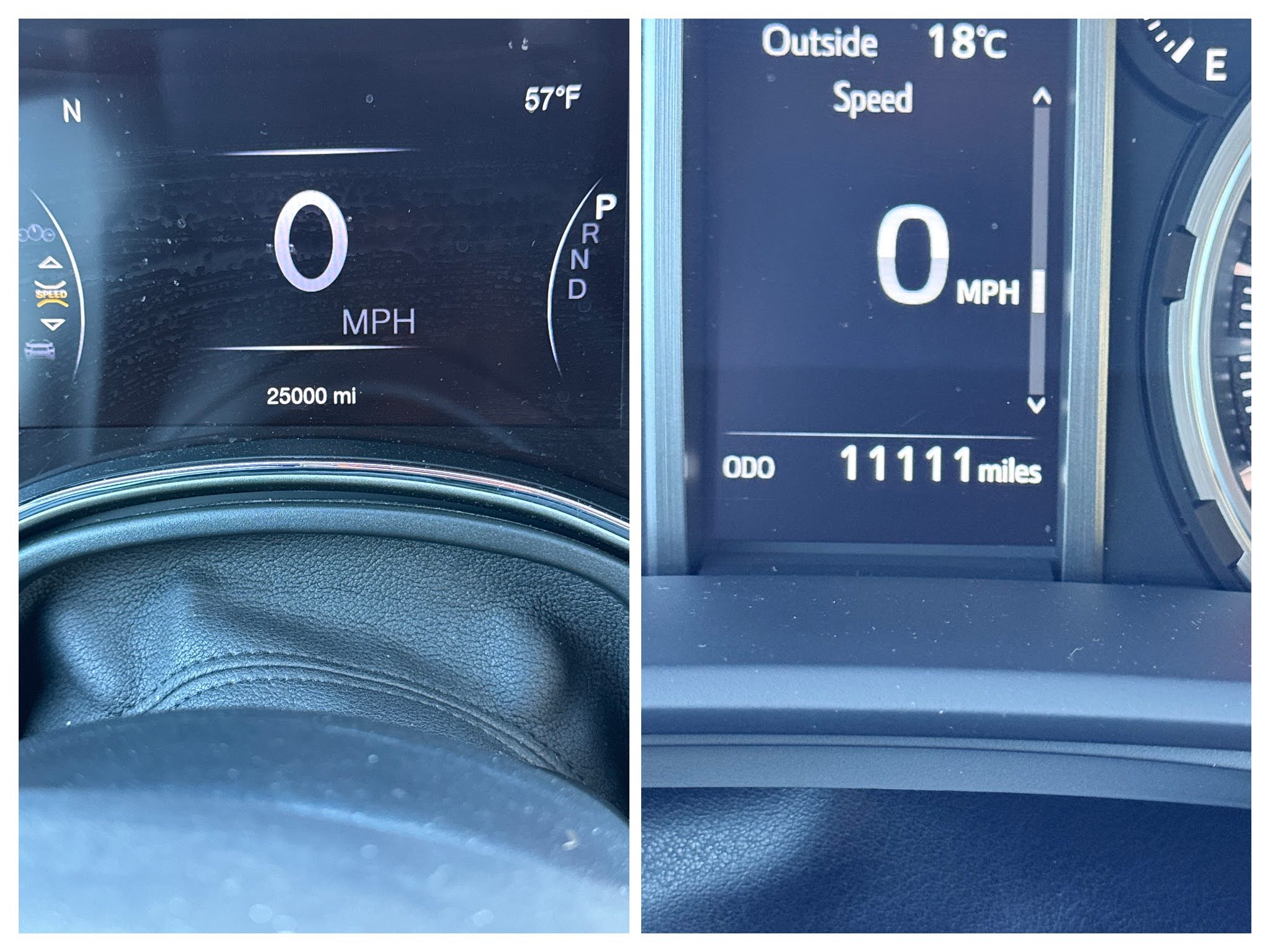 Hubby drives a 2024 Toyota 4-Runner that he bought used in 2024 with mileage already on it. It just turned 11,111