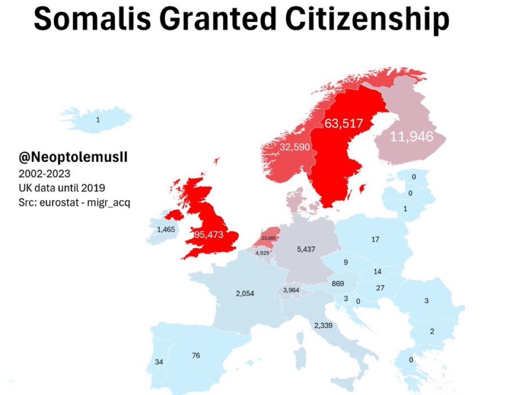 Whats interesting about Somali refugees and asylum seekers is that most that fled to Europe went to the cold north, counterintuitive.They tend to want to go where the diaspora has a community in major city, London having half of the toal 150,.000 in the U.K.