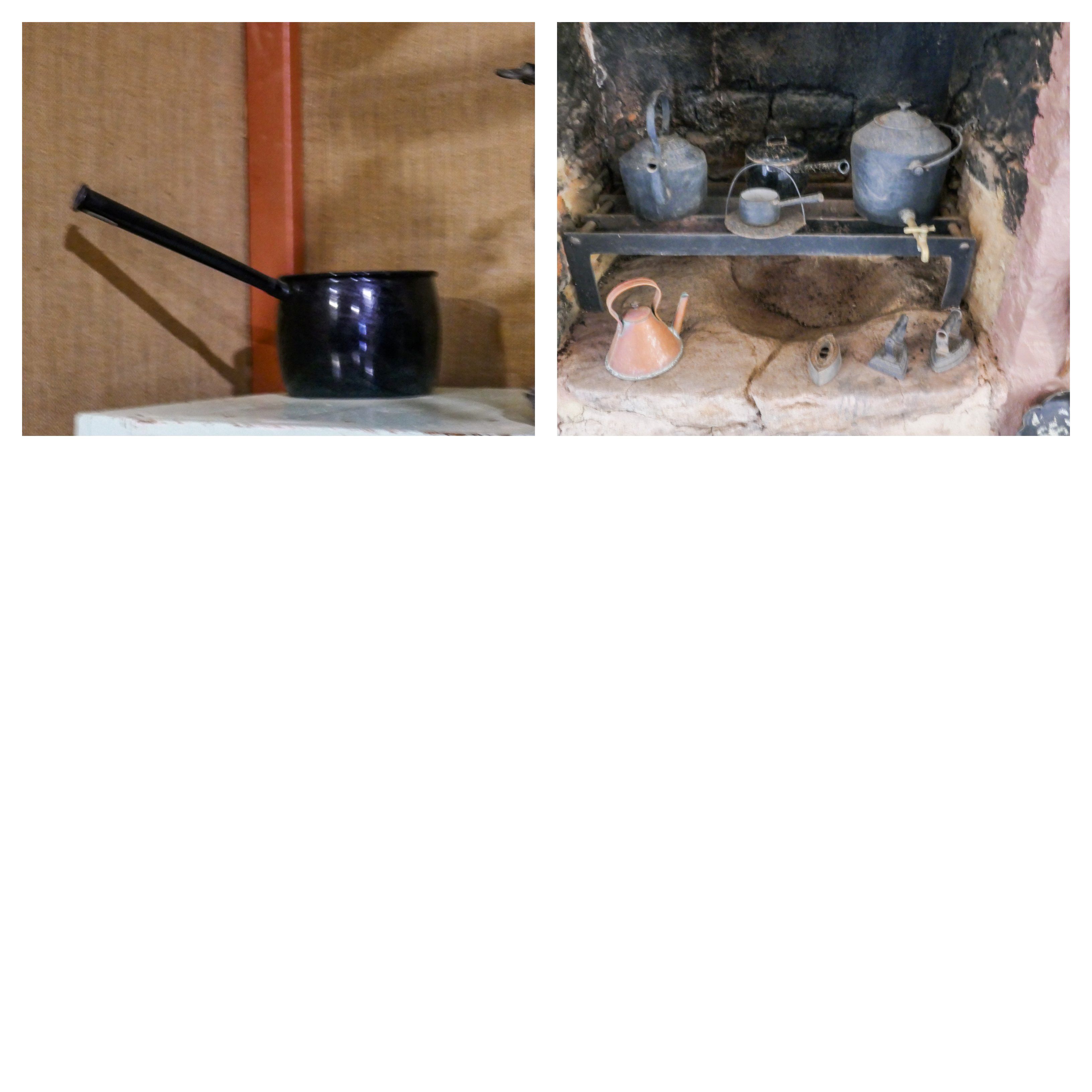 While in the Westonia Museum, I saw some saucepans with very long handles like the one in the left-hand image. I was wondering why the handles were so long but after seeing the open cooking range at Mangowine Homestead, I understood the reason.