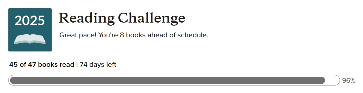 I wish you the best of good luck reaching your goal of reading 47 or more books.