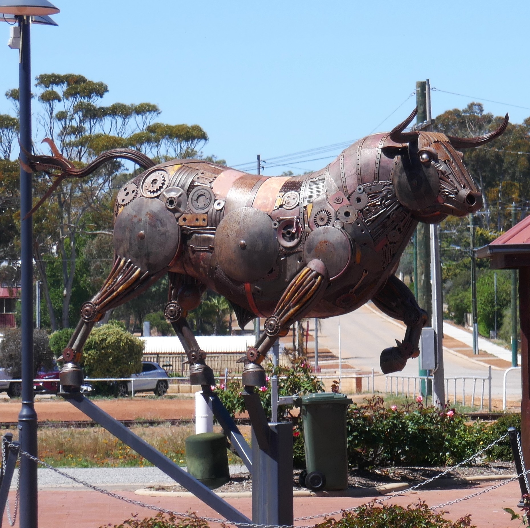 This statue stands in the main street of Quairading in Western Australia's wheatbelt area. Isn’t this a magnificent specimen of a bull? Look at the fire in his eyes! It wasn’t until I got close to him that I realised he’s been created from scrap metal. But hasn’t it been well done?