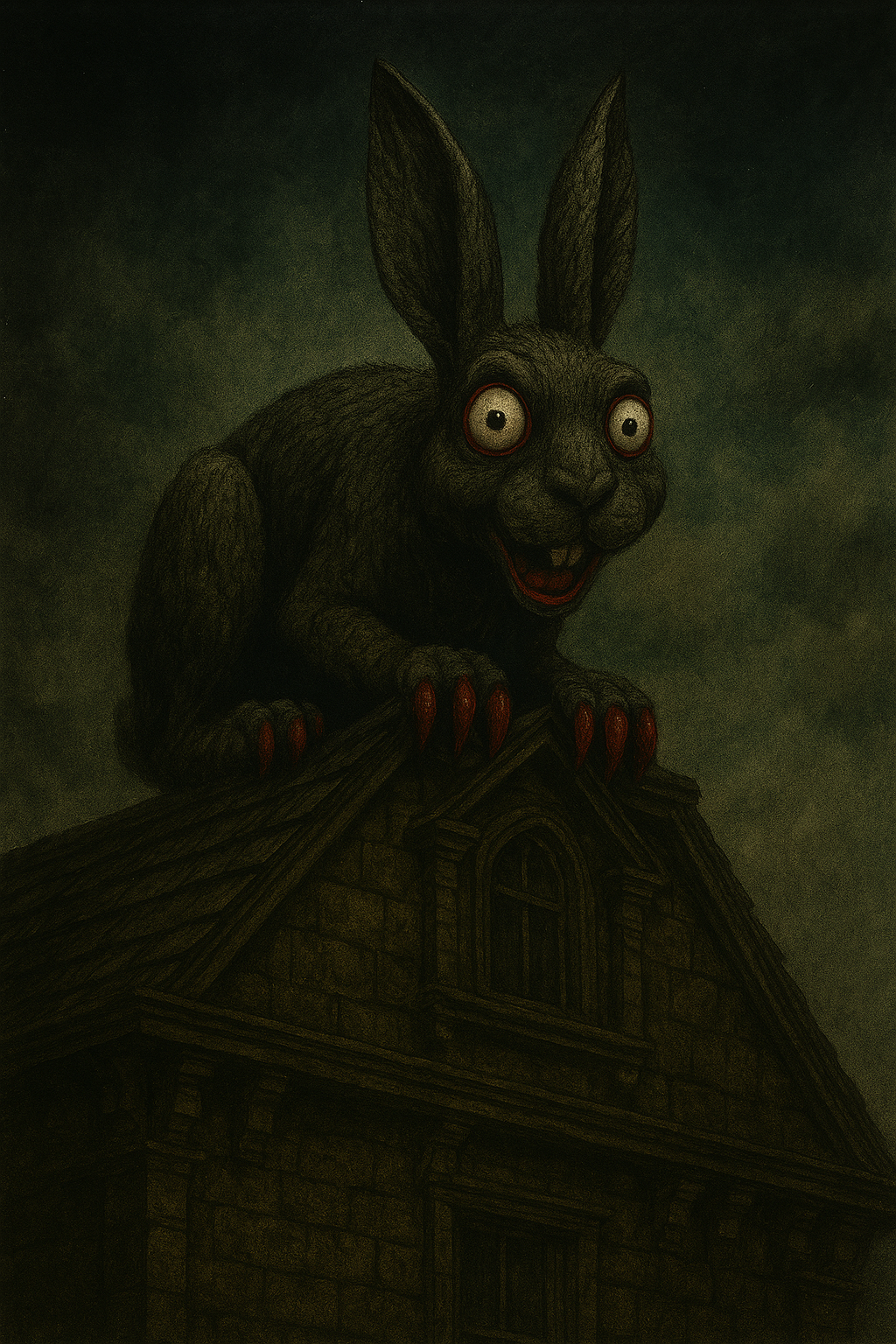 Still nailed into the beam. Still watching. It's wide eyes gleamed in the fading light, red claws curled just so. But the ears—they'd changed again.
