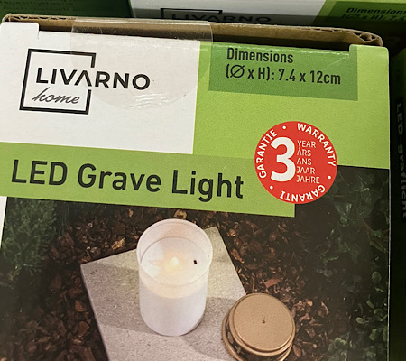 However I did find myself unintentionally but unavoidably sitting upon my portable judgement seat this morning in the supermarket when I spotted battery-operated grave lights on special offer.