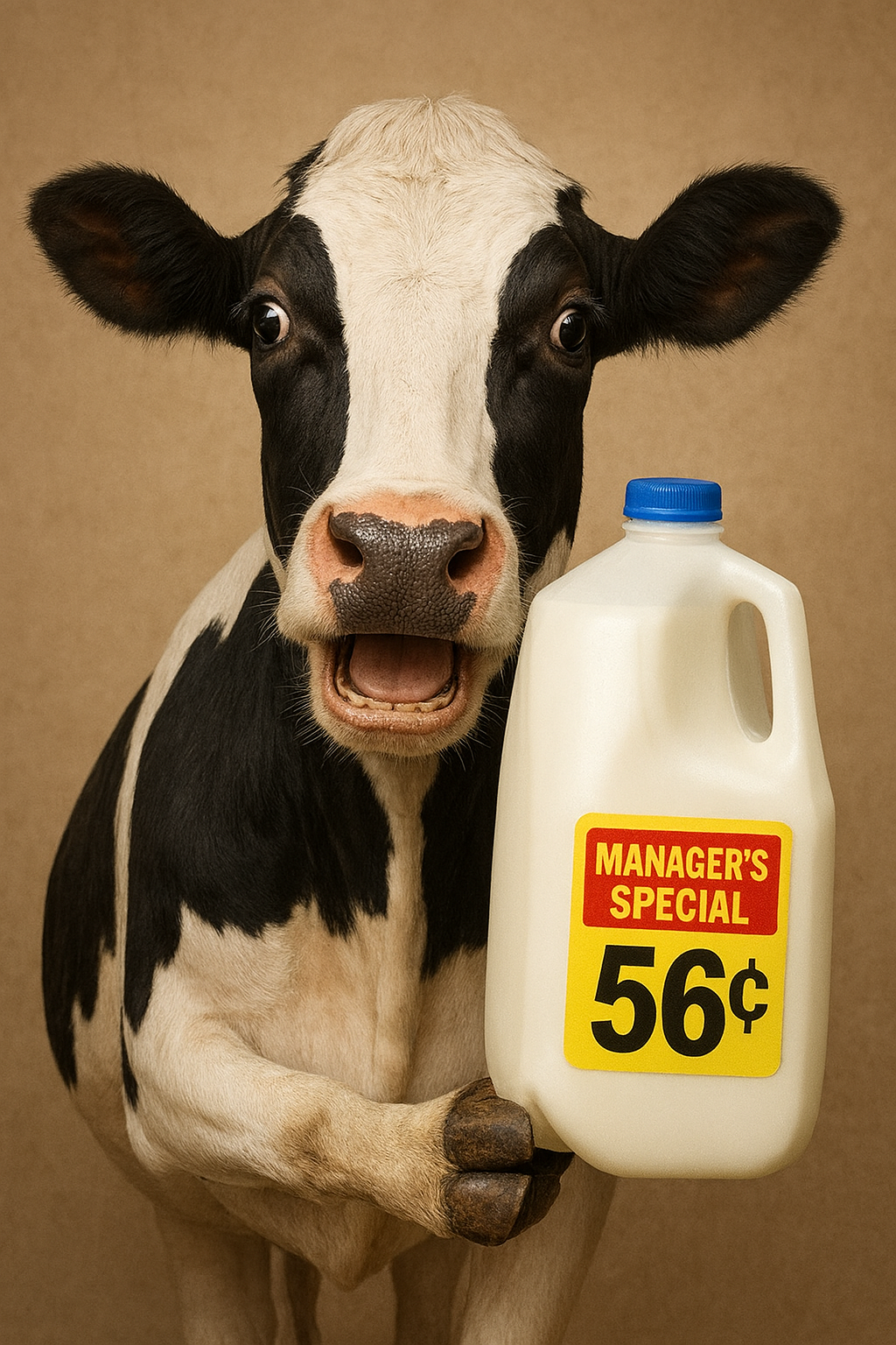 I glanced up and saw they had half gallons on sale for 56 cents, and they weren't expired, but simply nearing expiration.