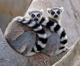 On their tails, each lemur has exactly 13 alternating black and white bands. When the lemur group goes walking together, they all put up their tails like flag masts so everyone will stay together, and it must be like seeing lemurs on parade.