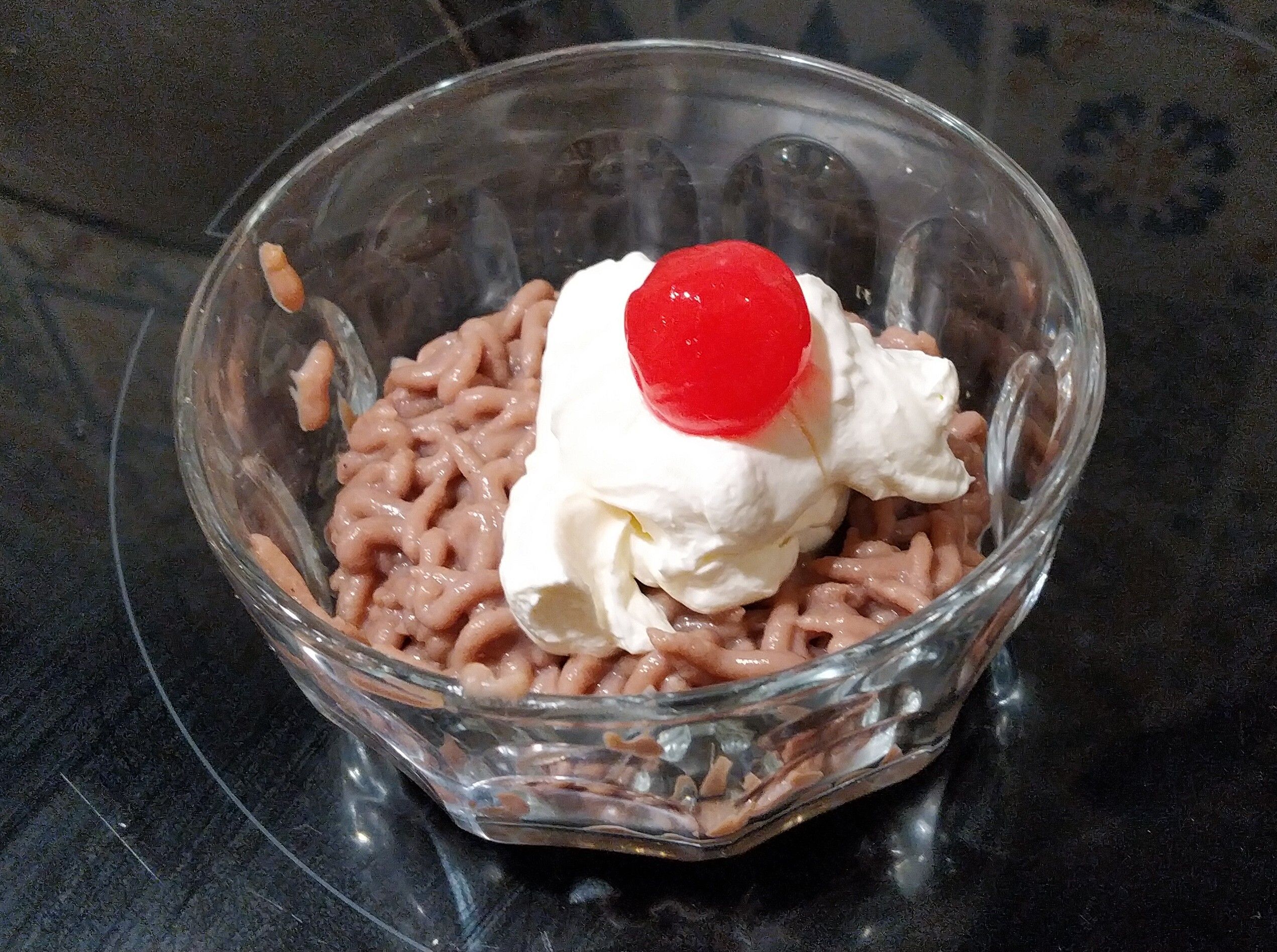 @Fleura - What an interesting dessert! To be honest, it looks a little like a bowl of worms with whipped cream on top. However, I'm sure it was delicious. I'm sure that most of our foods looked a little weird to the first person who tried them! I remember a seafood restaurant I like used to have a sign that said, "Twas a brave man, he would first ate a raw oyster."
