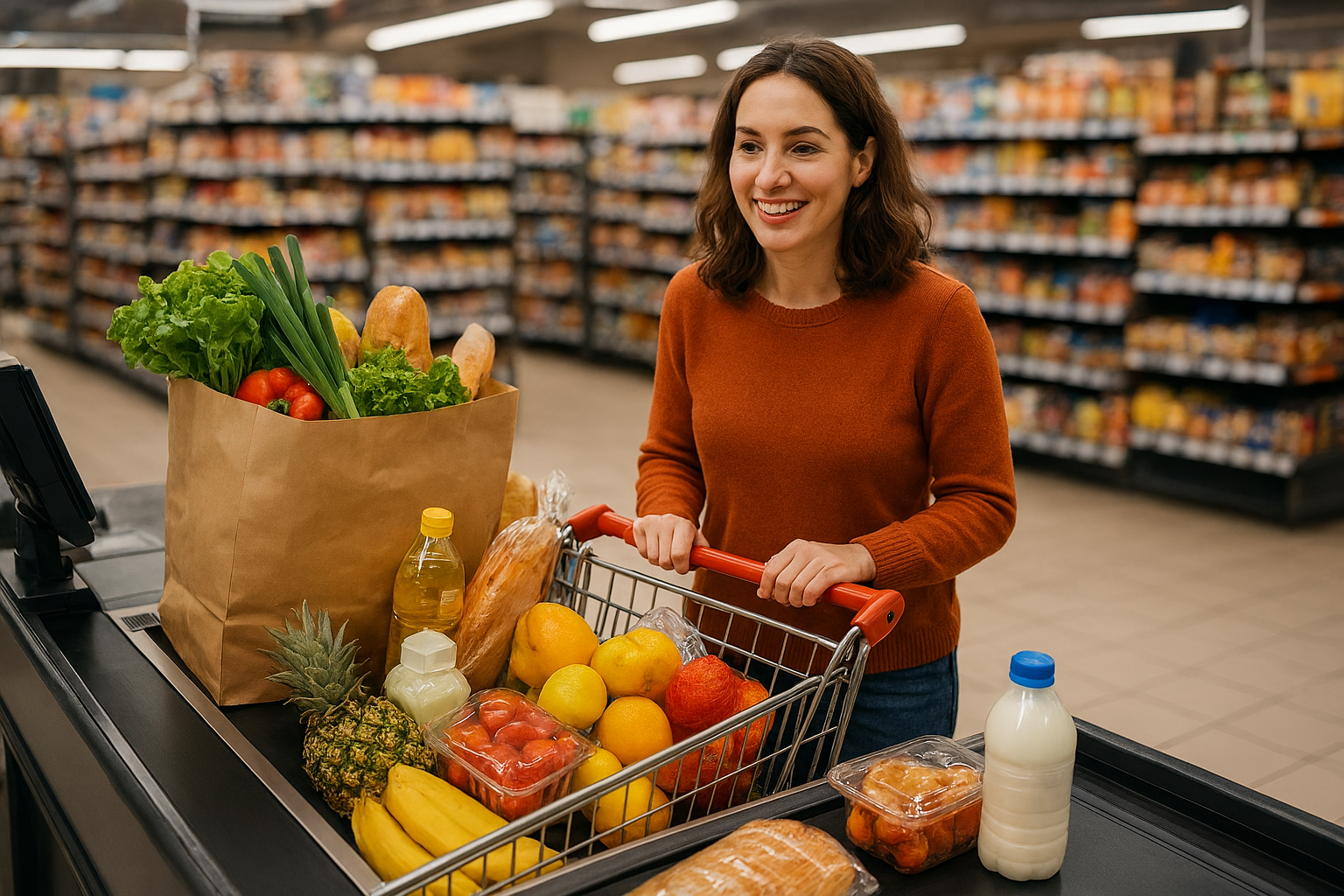 If the cart is heaping and overflowing, the person at the register will almost always be paying with a card issued by the government through a food assistance program. If the cart is less full, the person will be paying with their own money.