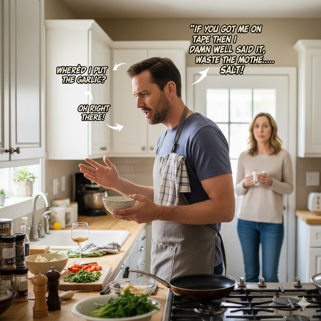 so i was cooking earlier and caught myself having a full conversation with myself. ..not just mumbling either, like actual back and forth "whered i put the garlic" , "oh right there" ..then outta nowhere i said "if you got me on tape then i damn well said it, waste the mothe...." like that samuel l jackson line from rules of engagement... all while looking for salt
