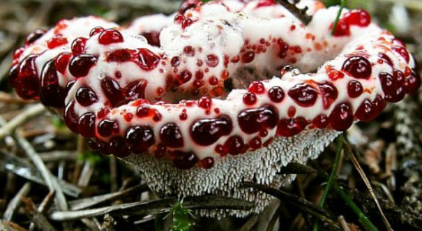 I know this sounds like a bad nightmare or something one would not like to have ever. Actually this is about a strange plant that is referred to as bleeding tooth fungus. Its name is Hydnellum peckii, and it’s a kind of fungus that produces blood-like or juice-like fluid. It can be found all over North America and in Europe. Odd as it might seem, this plant is also edible, but the fluid gives it a bitter taste. The plant also has an unpleasant odor, and the fluid can also vary and be pink or orange. Other names for this plant are “strawberries and cream” and “devil’s tooth.”