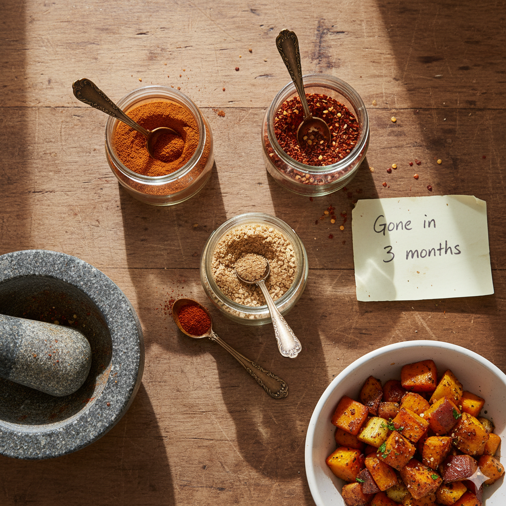 I no linger make big meals so I have must spices like seasoned salt, red pepper flakes, regular salt and pepper at home,