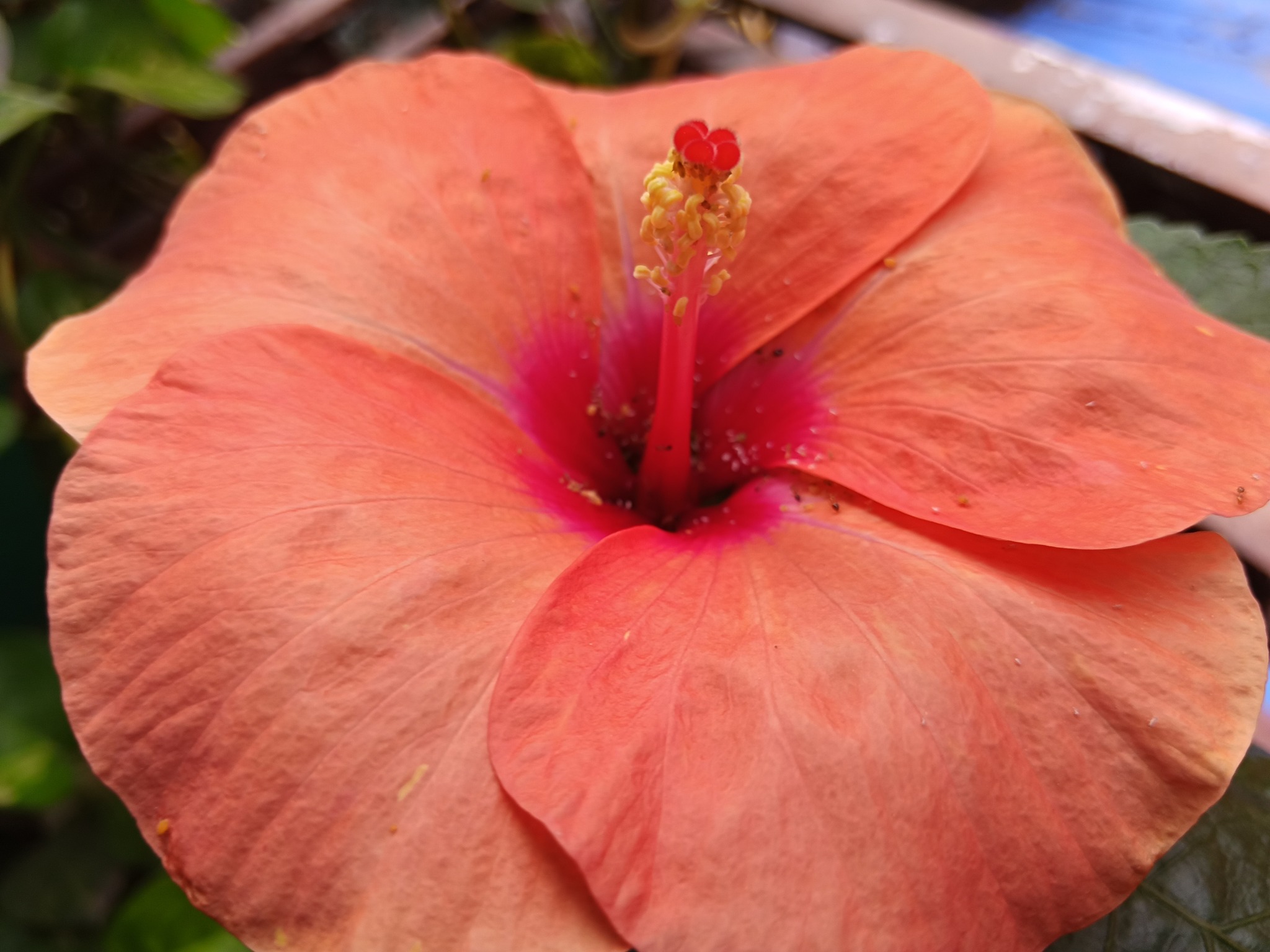 Orange hibiscus is Too good .It has given you a very big flower in a small pot.it is too good.It seems like a hybrid variety.