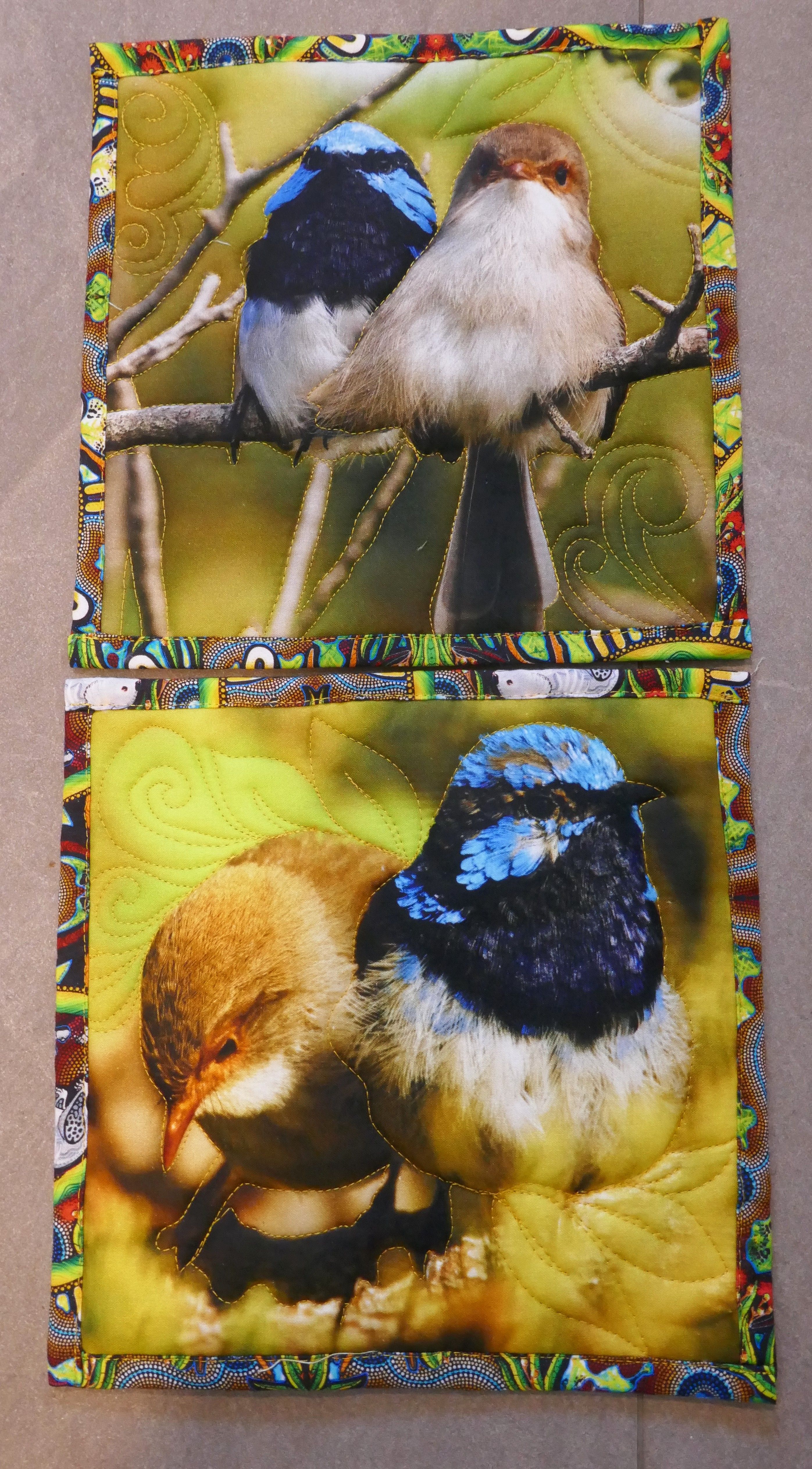 When we went to Wongan Hills, I picked up these two pot-holders that were locally made. They will make nice Christmas gifts, simple and without being too in-your-face expensive. Fairy wrens are very common in most areas and are certainly well-loved. They become quite tame very quickly.