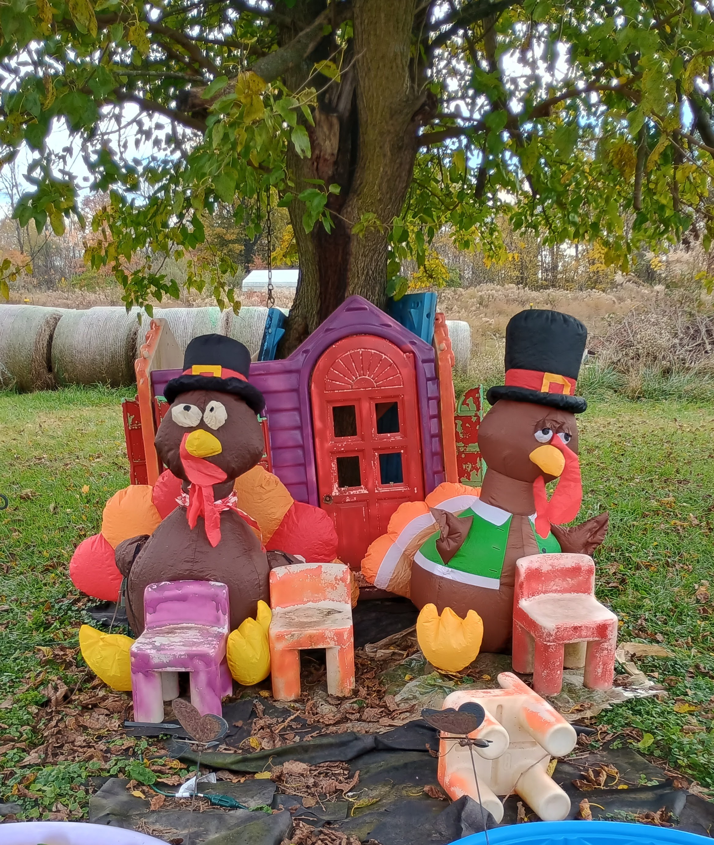 . I guess the giant turkeys scared them. This is the extent of my Thanksgiving decorations except for a glass turkey inside.