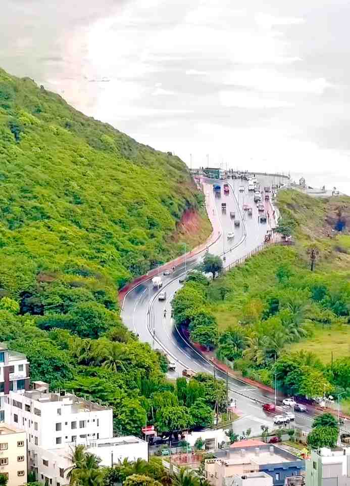 Sometimes we do not admire the beauty around us.This view point is from top floor of our building.See the greenery on either sides of wet road, Hill on one side and beach on other side ....how beautiful location it is.I always enjoy to ride on this road.but I never admired this view point.It became common to my eyes.Today We are vacating this residence ..now this breath taking view making so much sense
