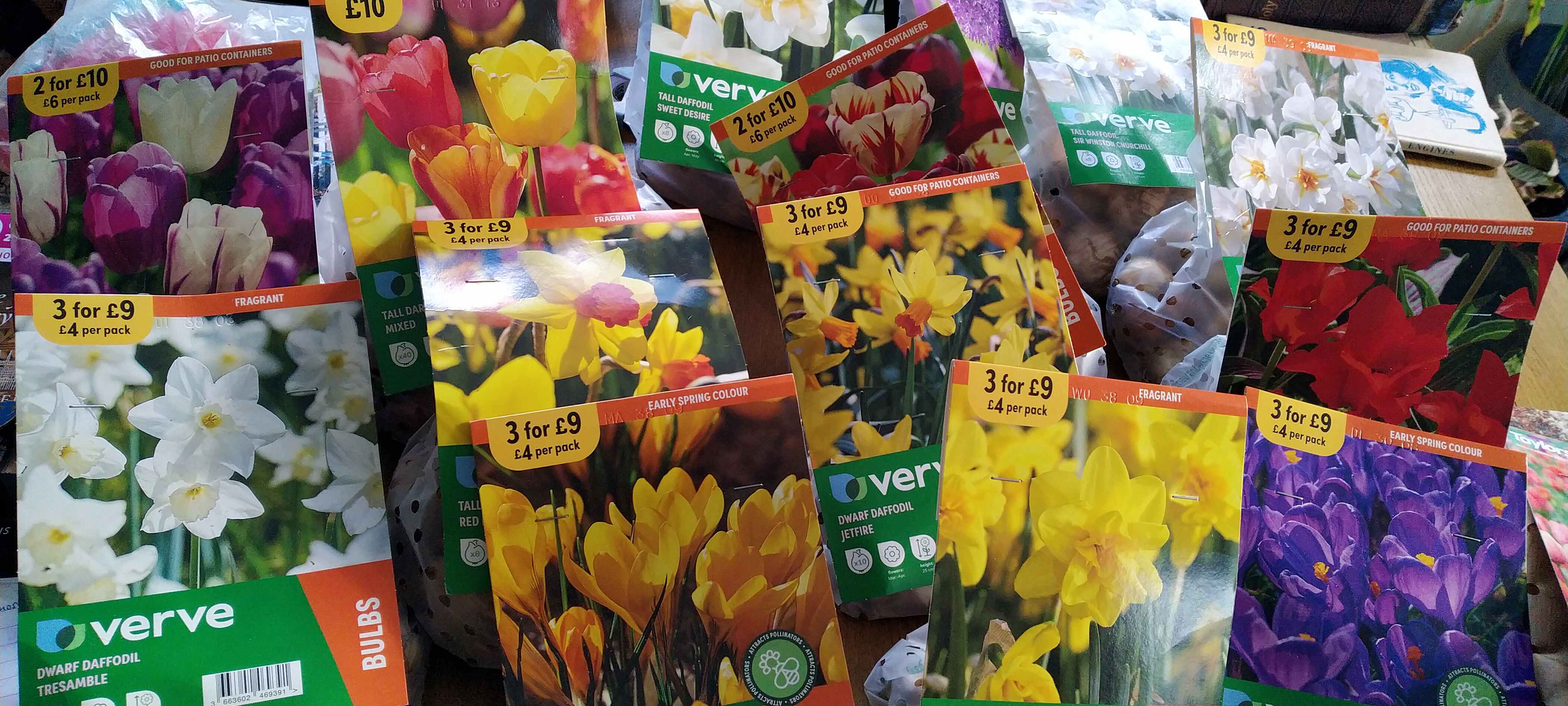 At the weekend I went on a bit of a shopping spree. Partner’s parents gave me some money for my birthday a little while ago so I – somewhat predictably – spent it on plants, specifically lots of spring bulbs.