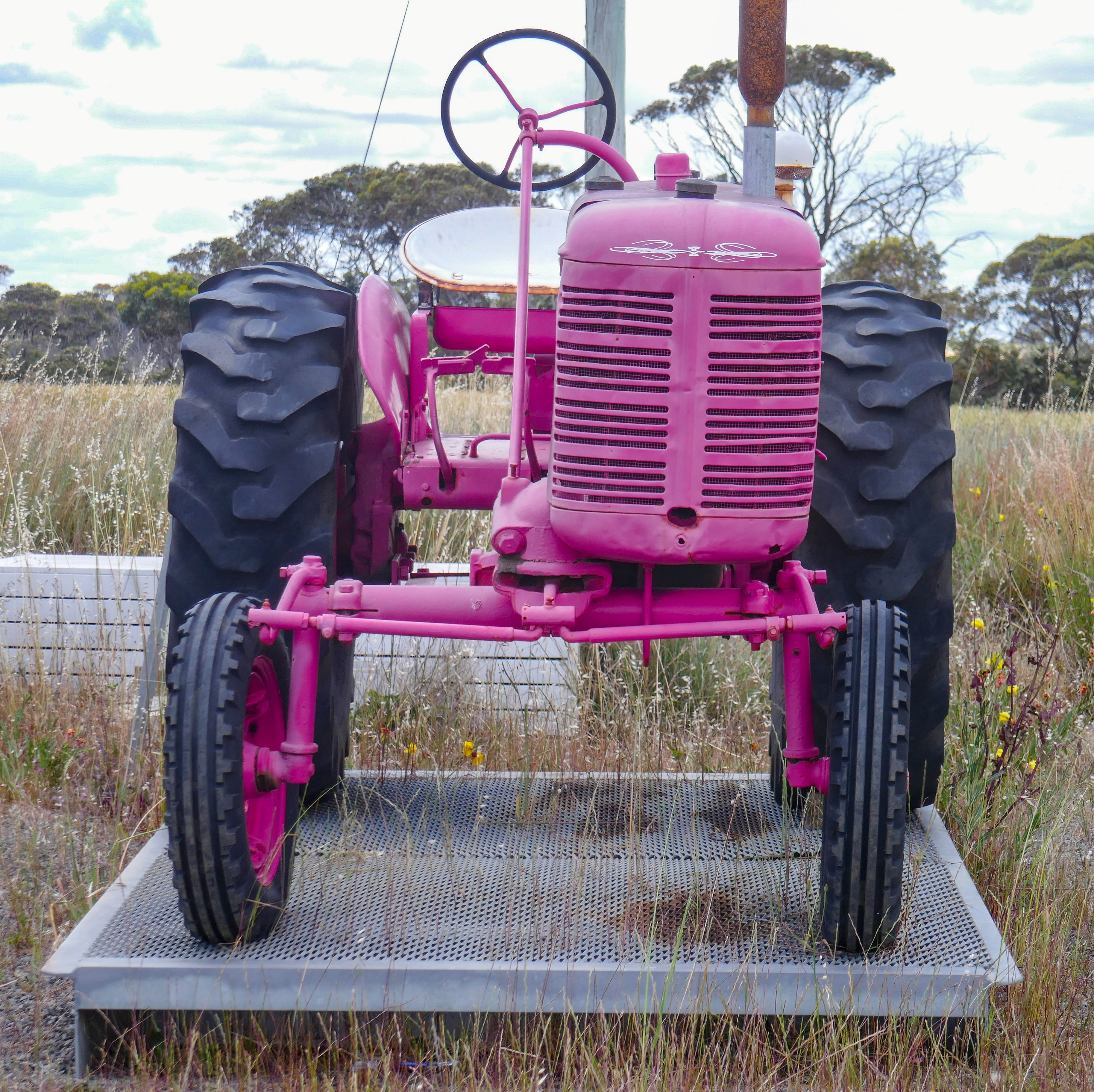 On our way to the Country Music Muster, we passed this ‘pretty in pink’ tractor which had ‘Lucinda’ painted on the side. However, I’ve chosen this photo of the same tractor taken from the front so you can see more clearly how it is offset. I’d never seen one like this before.