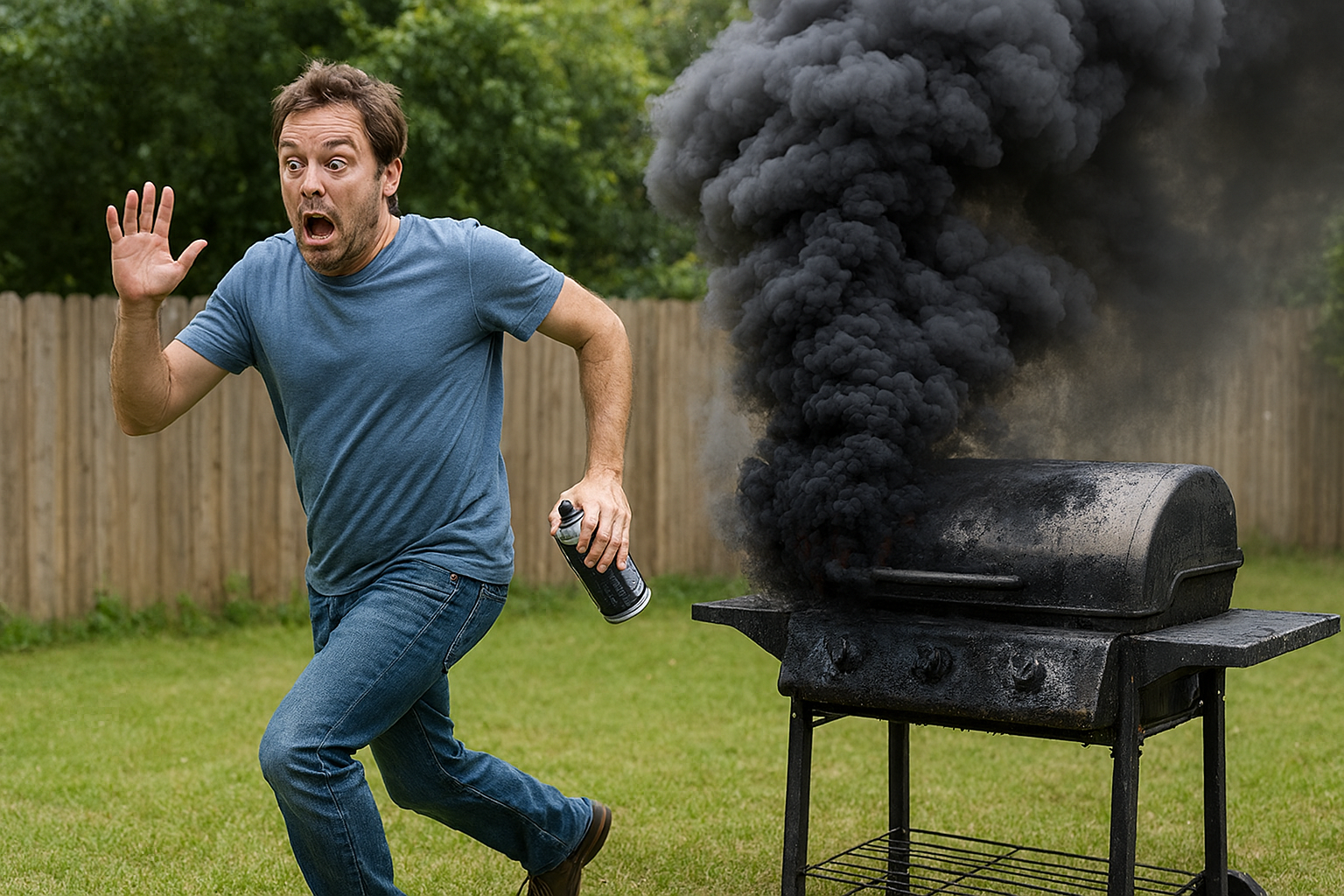 Good thing he didn’t fire up the grill when guests were over. Would’ve ruined the gathering.