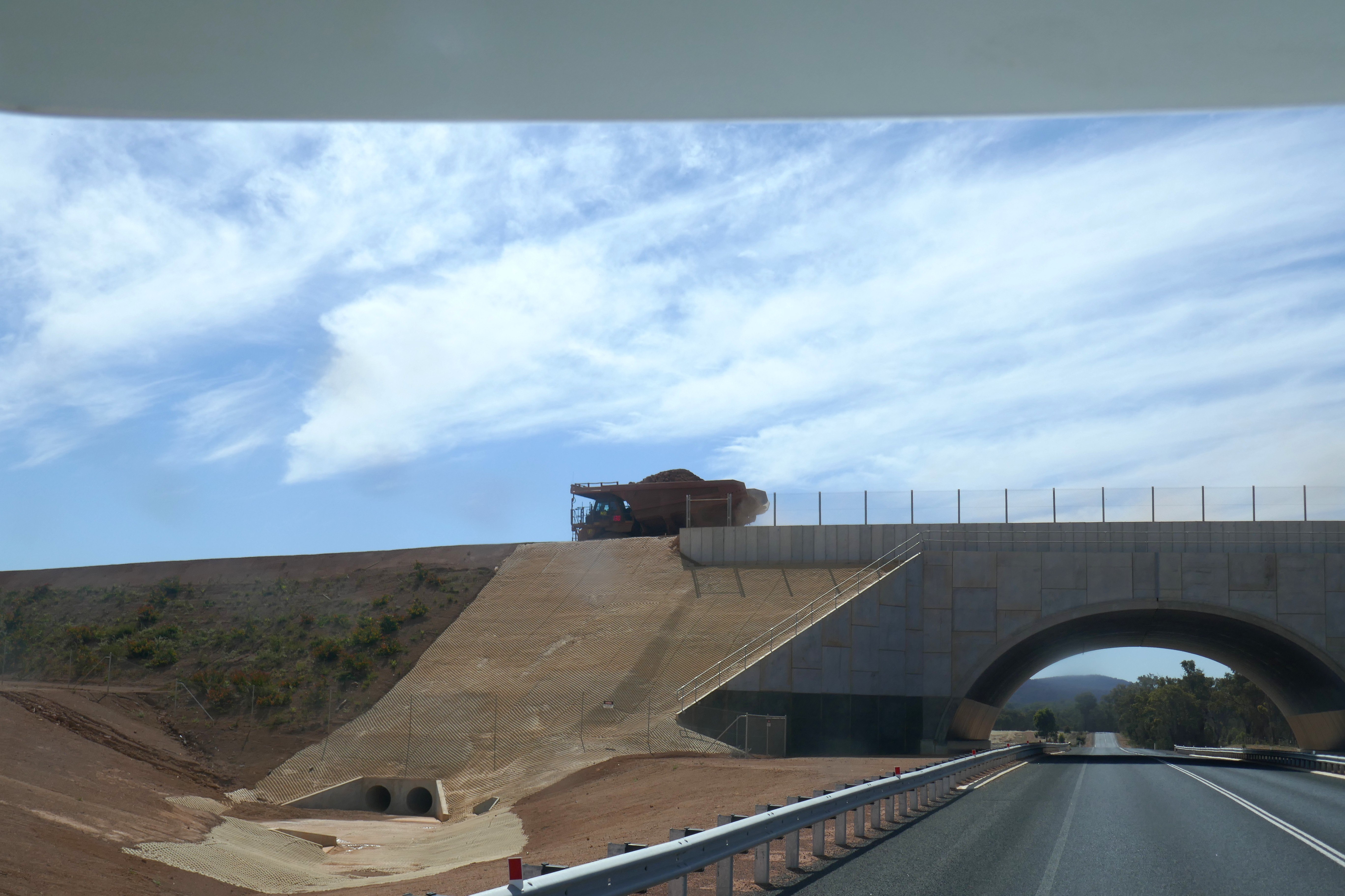 Here’s another photo that might have you guessing. It’s a bridge over the road and there is a lot of mining happening on either side of the road.
