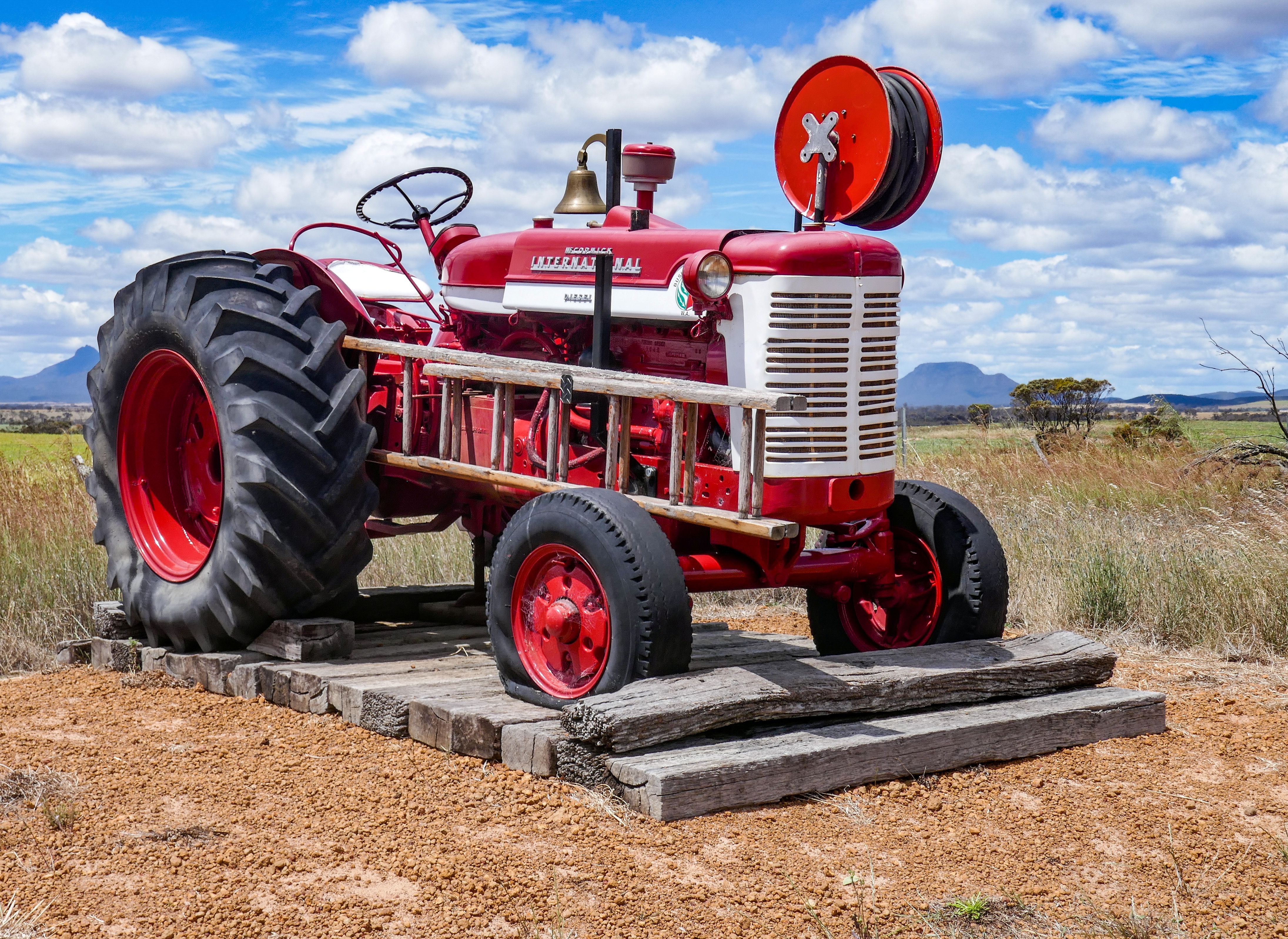 It’s a McCormick International and I think that is a Bushfire Brigade logo partly visible behind the headlamp. When we were part-owners of a farm machinery business, we were agents for International tractors.