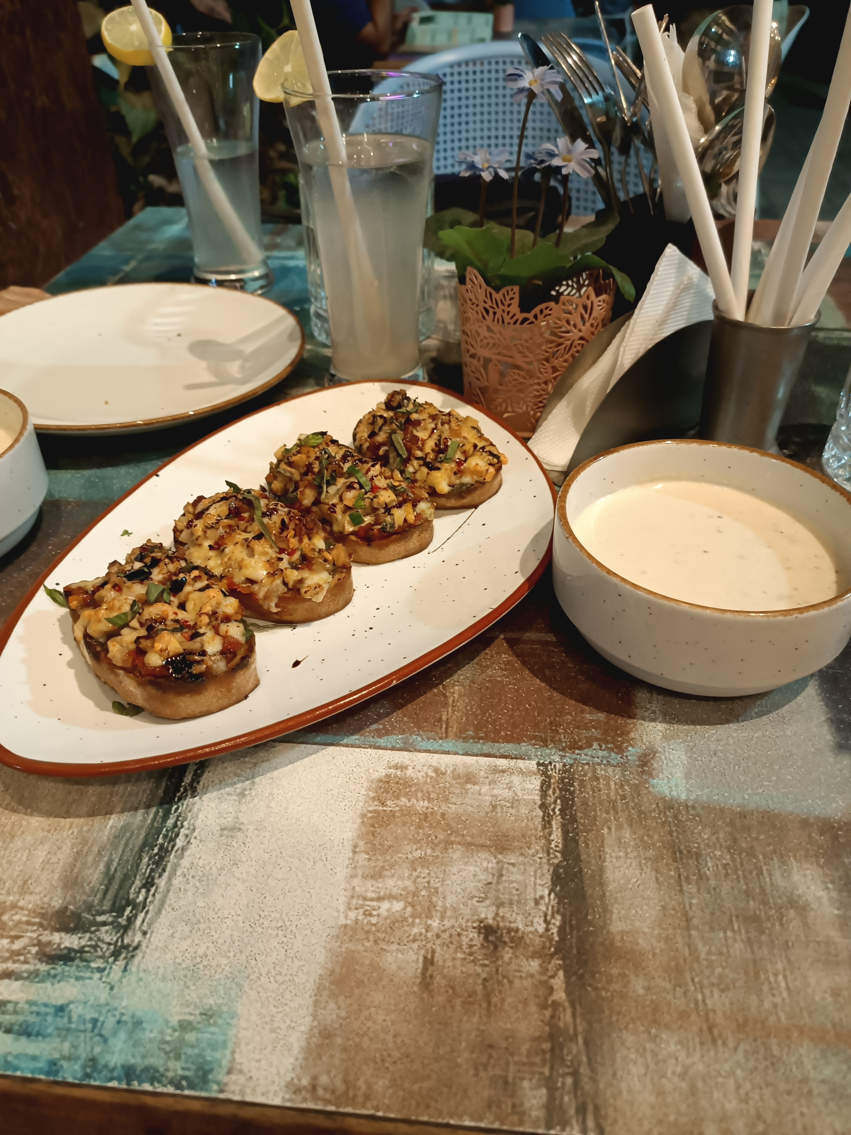 We had a glass of lime juice along with a special snack. What is that snack? It is garlic bread served with mincemeat.. It's a wonderful dish, and sipping it with the lime juice and the rain falling makes it very romantic. Thank you, friends. I hope you like a similar dish in the rain..