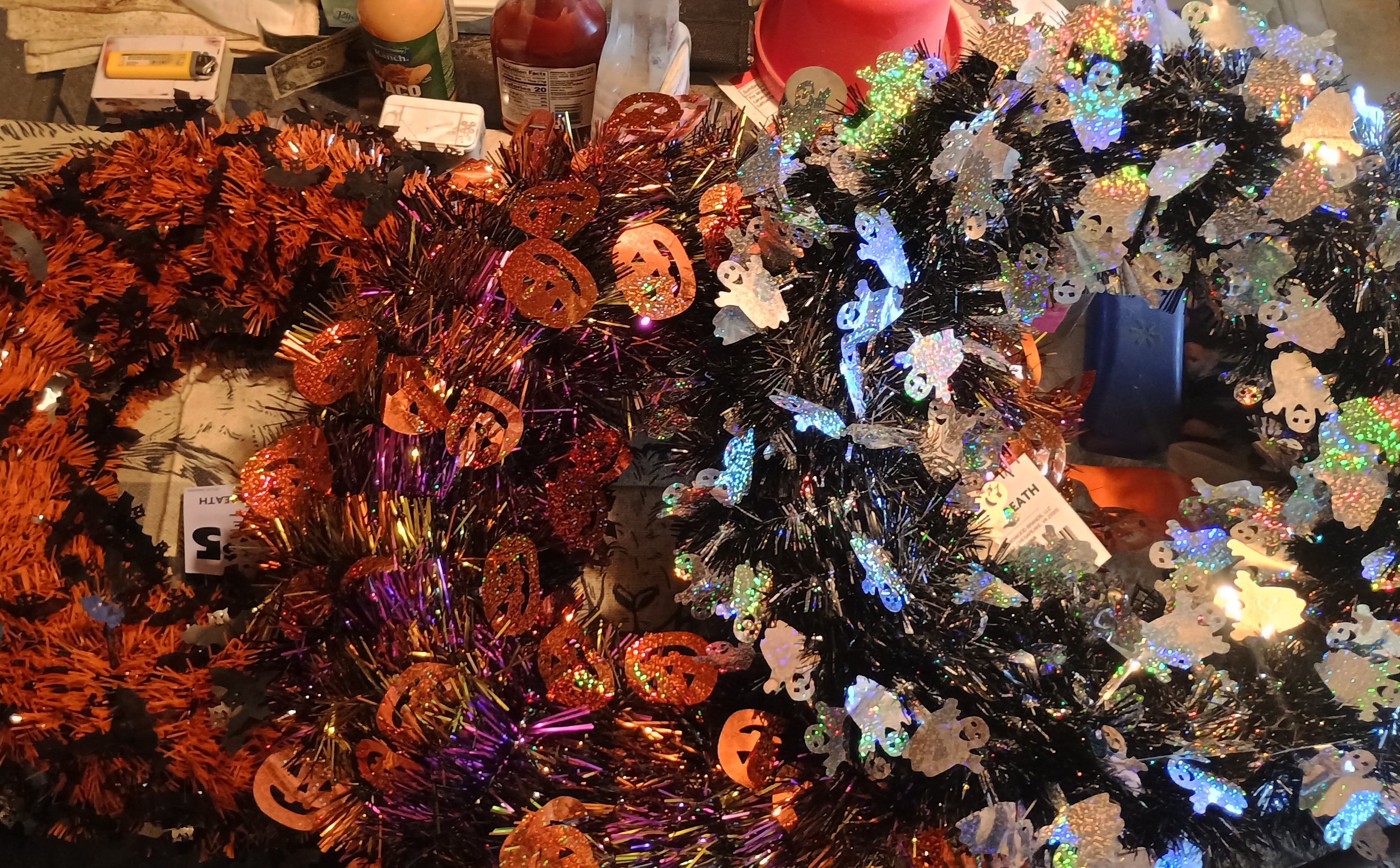 It started out normal enough. I got gas, tobacco and lottery tickets. Then went to Dollar General and got about half of my groceries. Then went to LaRue to Family Dollar. That's where I found these wreaths. They were 75 percent off and will be perfect for my crashed witches. Finished my grocery shopping there.