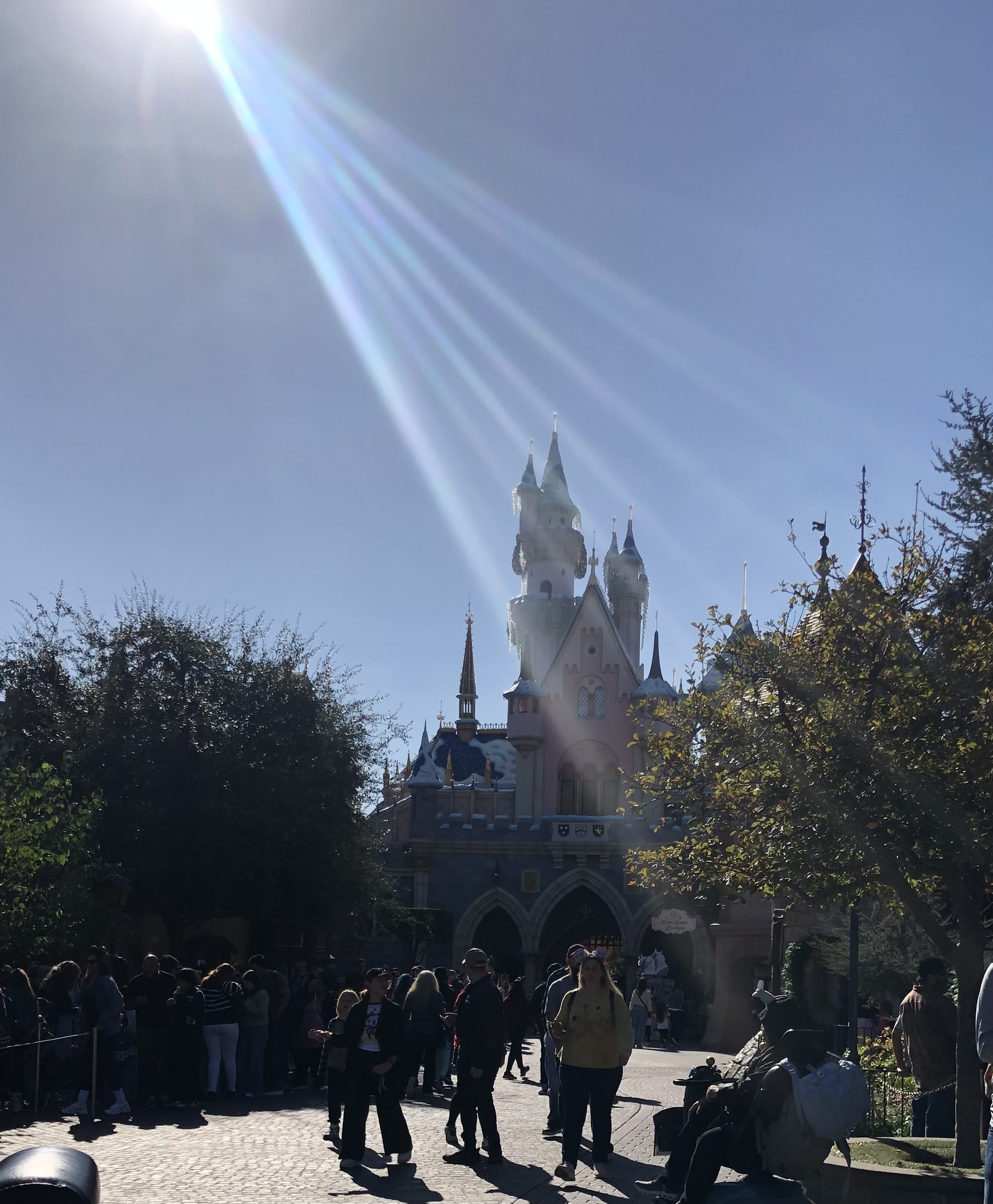 The picture was of the castle at Disneyland today, and it looks like nature shined a spotlight!