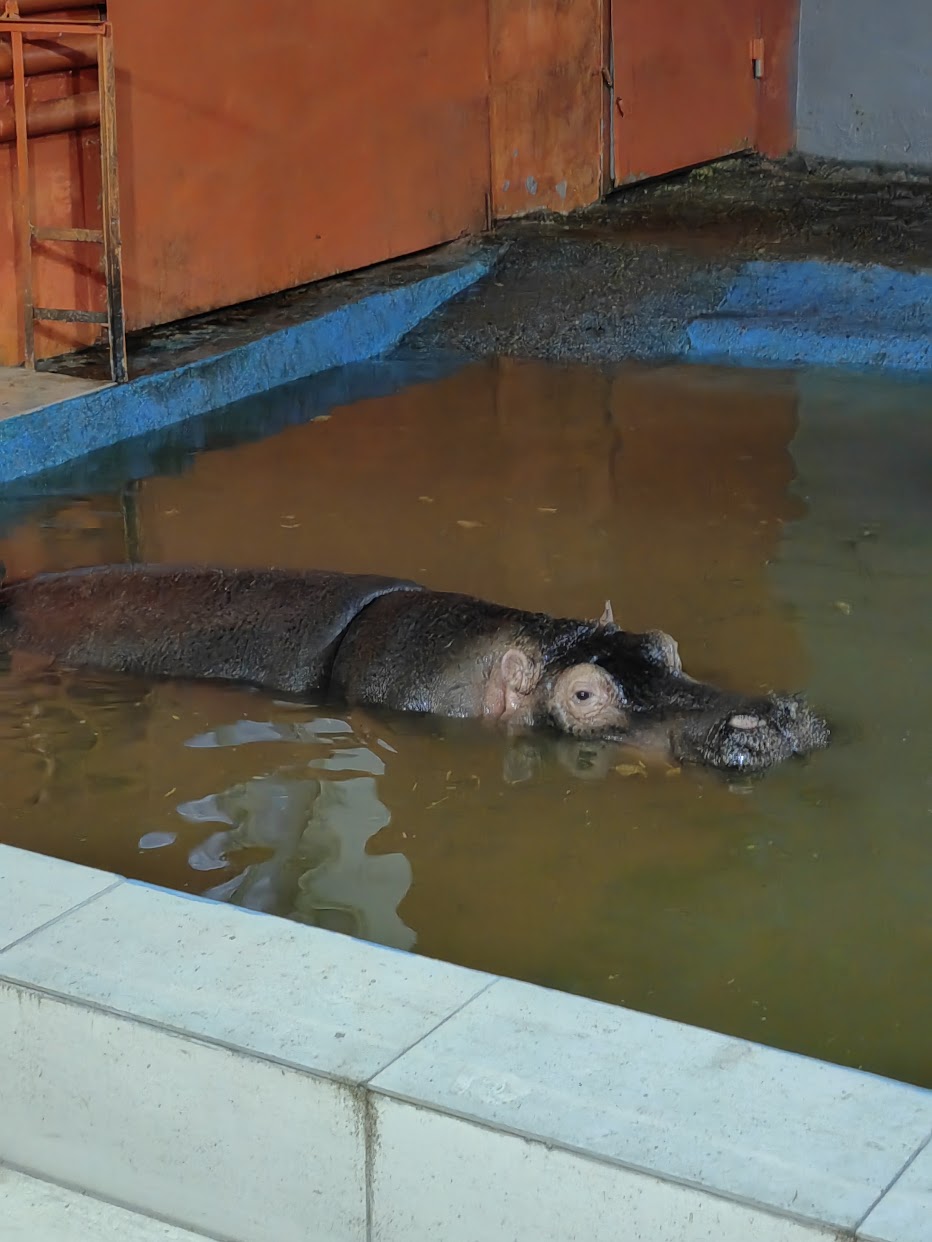 The Hippo in winter at Almaty Zoo, Kazakhstan