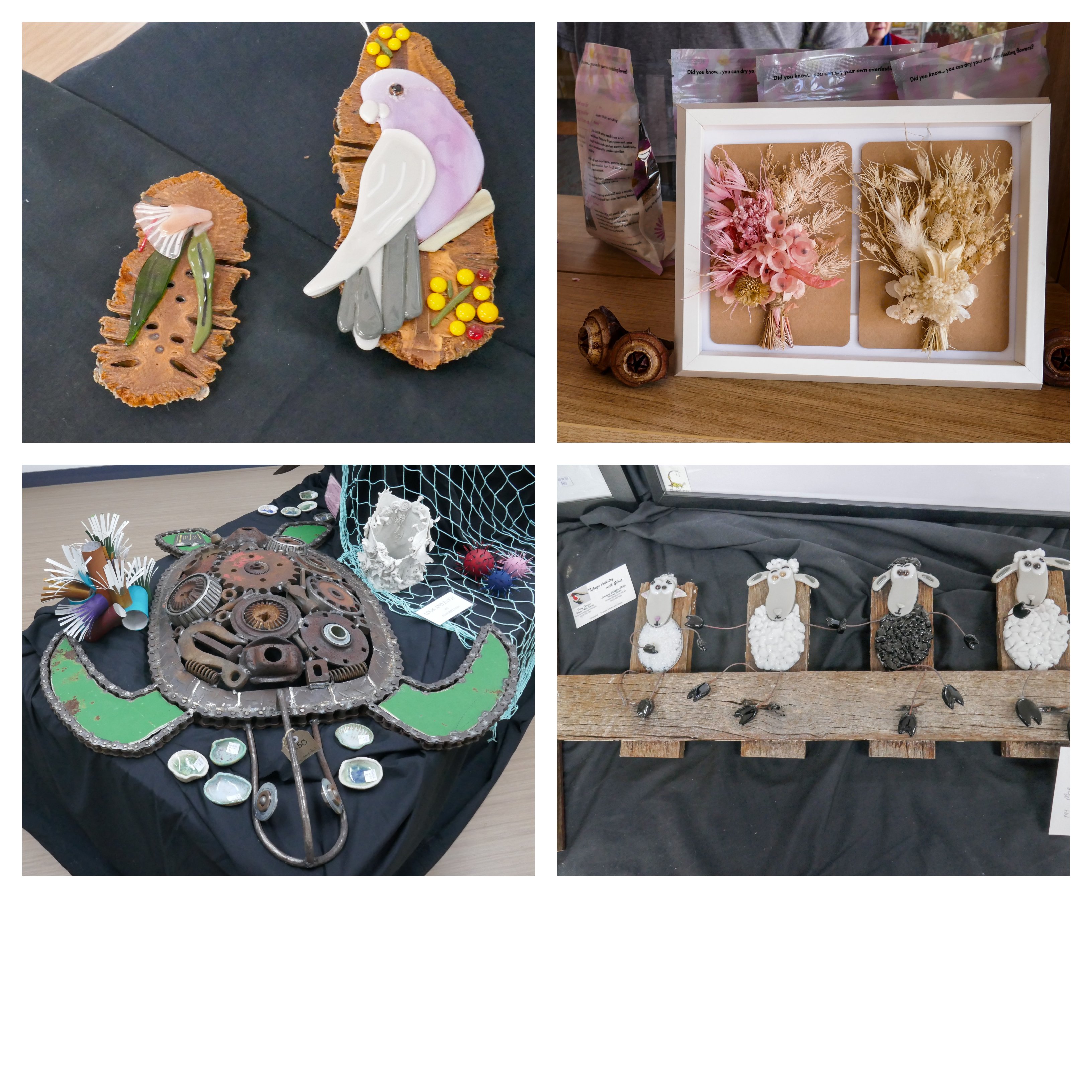 The collage shows some of the items on display at a Sand and Sea Art Exhibition at Wongan Hills in Western Australia.