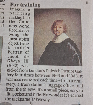 This was stolen from London's Dulwich Picture Gallery 4 times between 1966 and 1983.