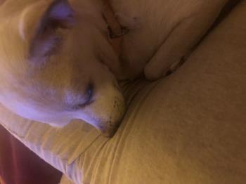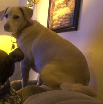 I was very happy to get my Sadie back last night. I heard scratching in front door, opened it, and here came Sadie! Thirty seconds later my friend came GOLO her with Frosty, her dog. I’ll show you what Frosty did when she got in my apartment… lol She likes the back of my couch!