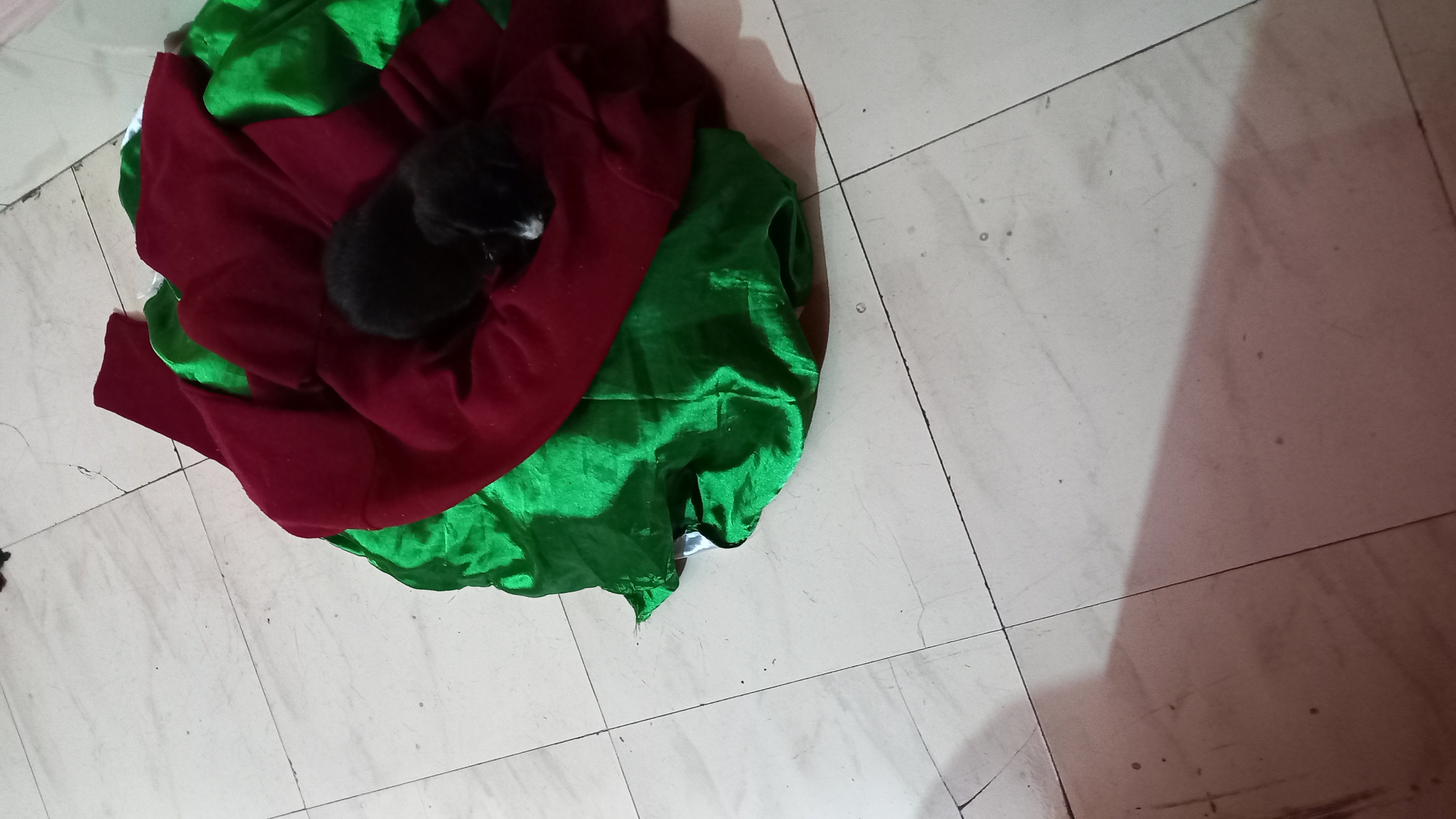 A few days ago a tiny puppy was left in our lane early in morning by some heartless person, screaming and shivering in the cold. One of the residents in our lane tried to feed her with plain rice which she didn't eat and kept on screaming. The lady tried to put together with the 8 pups of a stray dog she has given shelter but they rejected this helpless puppy. At last I brought it inside the house and fed it with warm milk. It drank it and slept peaceful on Kittu's old mattress that we had purchased when we had rescued him as a puppy. The little one is happy and growing gradually. I have named it Blacky