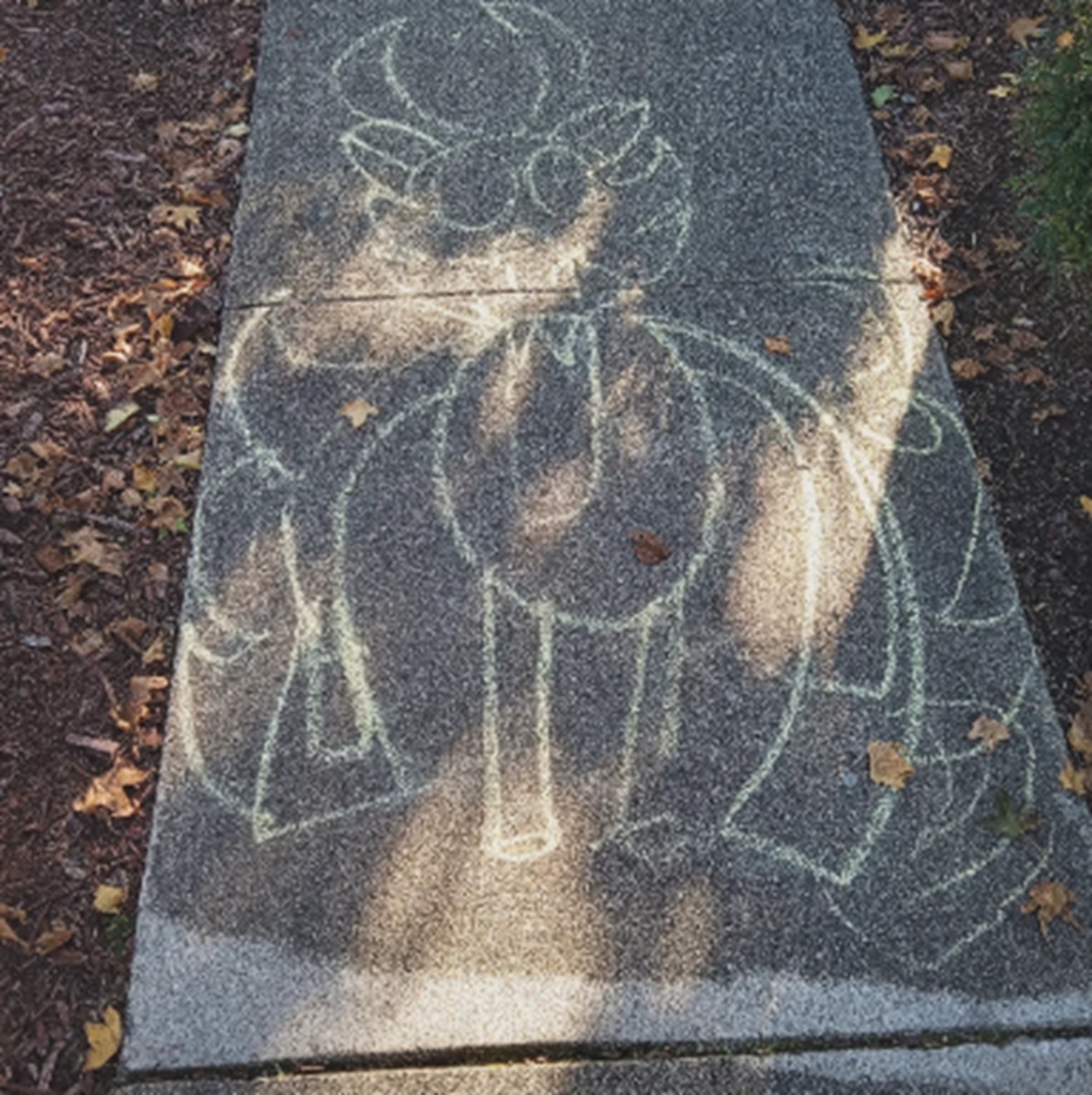 (Photo: the kids in the apartment area behind my building are always doing interesting chalk art, and I like to get photos of it).