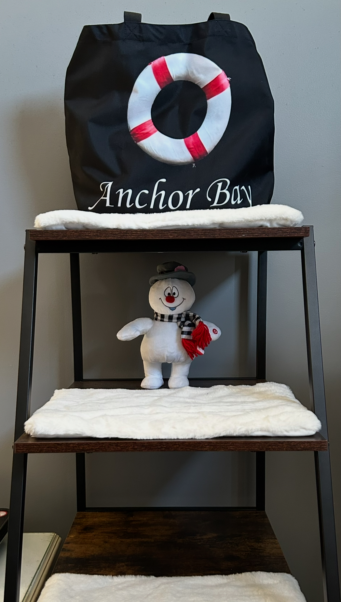 Frosty is moving with us too, so I just put him on that upper second shelf, (he sings and dances!) and then the bag on top, that has all my summer clothes.