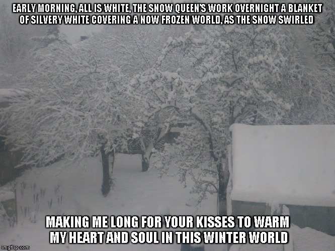 I attached one of my poetic memes, and that winter world you see is our garden in Latvia.